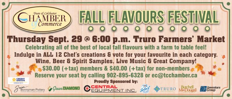 Celebrate the best of local with us on Sept. 29 at the Truro Farmers' Market. 12 local chefs will be serving dishes featuring a variety of locally sourced meats, produce and other ingredients. Sample beer, wine and spirits from Coldstream Clear Distillery, Caldera, Steinhart Distillery, Benjamin Bridge, Tatamagouche Brewing Company and Nook and Cranny, while enjoying a taste of local dining under the outside pavilion at the Truro Farmers' Market. Cost is $30 per person for Chamber members, $40 for non-members. Live entertainment. Watch our
