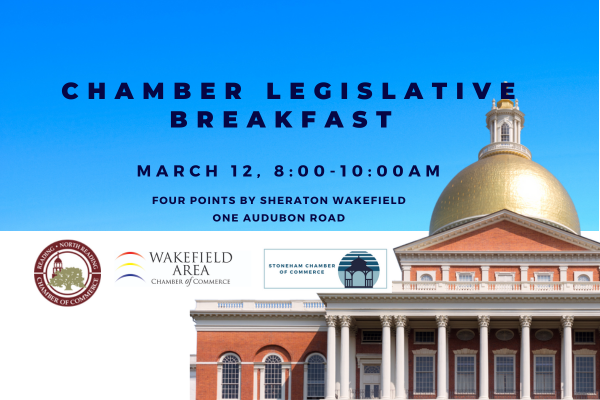 The Stoneham, Reading-North Reading, and Wakefield-Lynnfield Chambers invite you to our annual Chamber Legislative Breakfast hosted by Senator Jason Lewis. This event offers the opportunity to hear from the legislators about recent legislation and the outlook for the Commonwealth. A light breakfast will be served.