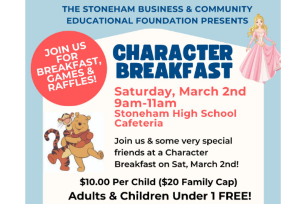 All are welcome to attend the Stoneham Business & Community Educational Foundation's Character Breakfast! Admission includes bagels, juice, coffee, donuts, 10 free game tickets, and prizes.