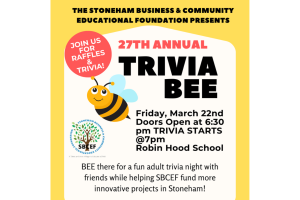 BEE a Team Sponsor for a $200 donation! BEE a contributor of a gift card or raffle item! If you have a team but need a Sponsor, please contact Marie Christie at 781-438-9420. To register a team send a tax-deductible check payable to "Stoneham Business & Community Educational Foundation" to SBCEF, PO Box 408, Stoneham, MA 02180.