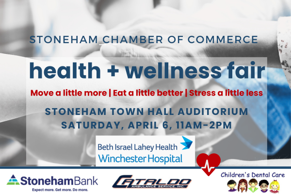 Since 2010, the Stoneham Chamber of Commerce has offered a Health & Wellness Fair in partnership with Winchester Hospital to connect the Stoneham community to the local resources that will help everyone move a little more, stress a little less, and eat a little better. Free of charge to the community, the Health + Wellness Fair features healthy lifestyle activity demonstrations such as karate, yoga, and Pilates. Healthy lifestyle seminar topics may include cooking demonstrations or discussions about diet and healthy eating. Health screenings of various sorts are provided free of charge. This is a family friendly event! Activities such as face painting, balloon sculpturing, and craft making will also be available. This event is sponsored by Beth Israel Lahey Winchester Hospital, StonehamBank, Cataldo Ambulance Service, and Children's Dental Care.