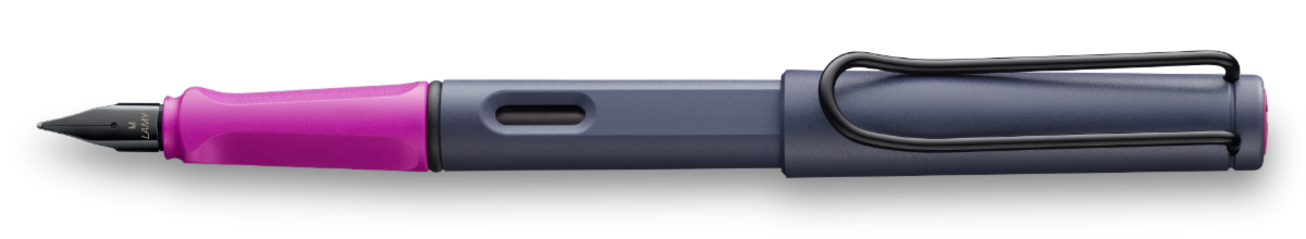 First of all, the Lamy Safari Special Edition 2024 Kewi is a special edition fountain pen that was just released in February 2024. It has a two-toned design and is available in two versions: a Violet Blackberry and Pink Cliff color. Notably, the darker (more prominent tones) are contrasted with a brighter color for a stylish, modern twist.