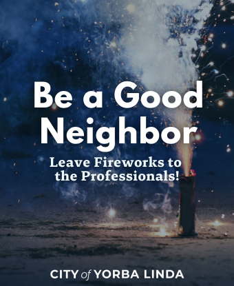 Yorba Linda Police Services and the City of Yorba Linda remind residents that possessing or discharging fireworks within Yorba Linda City limits is prohibited. If you light it, we'll cite it!