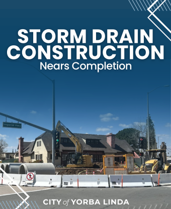 Attention commuters and Yorba Linda residents! The storm drain repair at Yorba Linda Boulevard and Imperial Highway is progressing as scheduled and is expected to be completed by mid-June. Structural work is scheduled for this week, and upon its completion, all lanes on Yorba Linda Boulevard will be fully open. Thank you to the Yorba Linda community for your patience as the City works diligently to maintain safe and efficient roads.