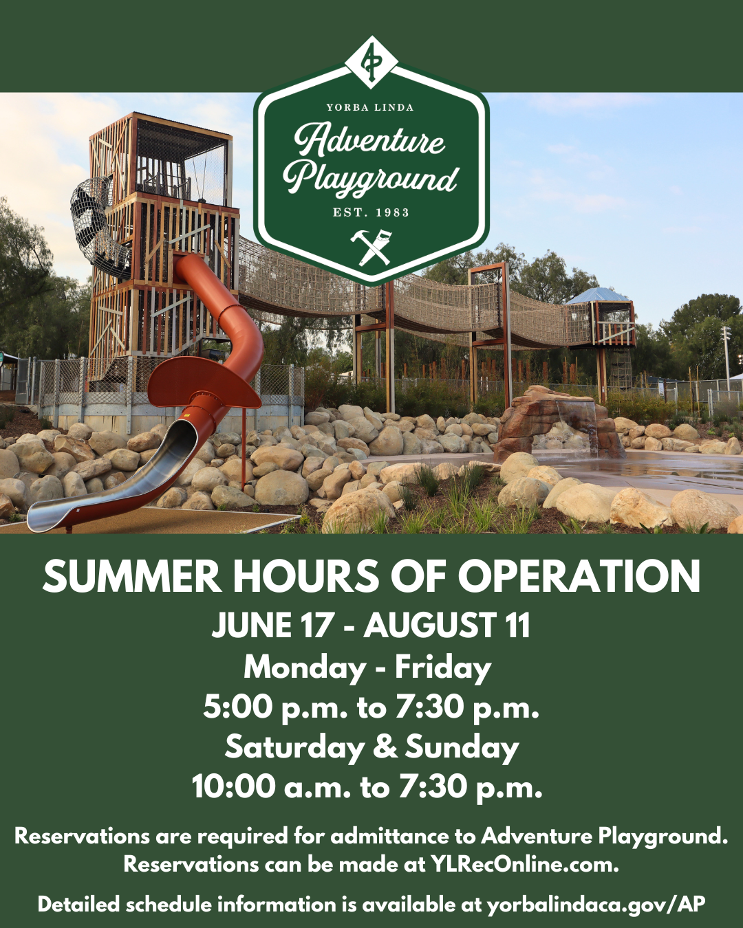 Adventure Playground Summer Hours Begin June 17 | |