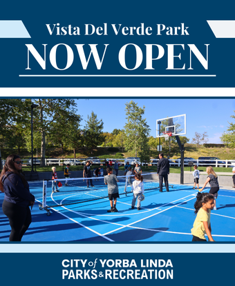 The new multi-court at Vista Del Verde Park is now open! Last month, a ribbon-cutting ceremony celebrated the opening of the newly improved Vista Del Verde Park for Yorba Linda residents. The park now features a new full-court basketball court equipped with overlay lines for three pickleball courts and movable nets. The new multi-court is open from 7 a.m. to 7:30 p.m. daily and is available on a first-come basis.