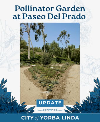 Located on Paseo Del Prado north of Calle Bella and south of Travis Road, the Paseo Del Prado Pollinator Garden is attracting a variety of pollinators this summer season! In April, Love Yorba Linda volunteers and City staff transformed water-consuming turf into a beautiful, eco-friendly space with hundreds of shrubs, plants, and trees. Today, this garden continues to attract pollinators like insects and butterflies to promote plant reproduction. Enjoy a scenic detour on the adjacent trail to see the garden up close.