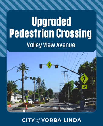 The pedestrian and equestrian crossing at Valley View Avenue and El Cajon Trail has been upgraded! The City has installed a lighted pedestrian crosswalk complete with new pushbuttons, signs, and an LED yellow flashing light. This improvement underscores our commitment to enhancing safety measures and maintaining the exceptional quality of life in Yorba Linda.