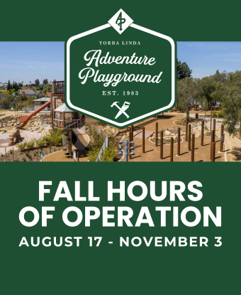 Get ready for fall fun at Adventure Playground! From Saturday, August 17, through Sunday, November 3, Adventure Playground will operate according to its fall hours. Please note that the Adventure Playground will also be closed from Monday, August 12 through Friday, August 16.