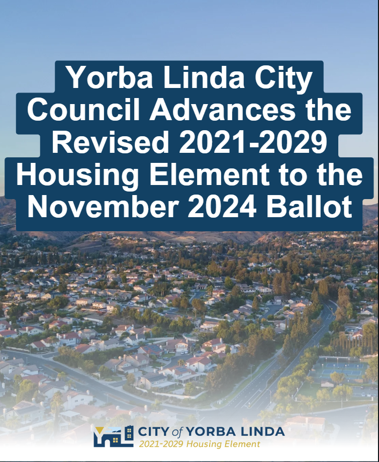 Yorba Linda City Council Advances the Revised 2021-2029 Housing Element to the November 2024 Ballot