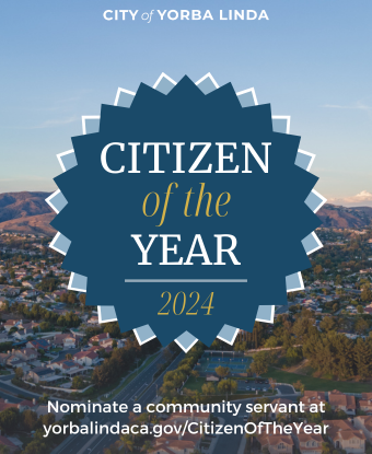 Who will this year’s Citizen of the Year be? It’s a great honor to be recognized, and you can help us ensure it goes to someone deserving by nominating a local hero who goes above and beyond for Yorba Linda! We are currently accepting nominations for the 2024 Citizen of the Year recognition and invite you to participate. Nomination forms and detailed information about the program, including a list of past recipients, are available on the City’s website. Nominations for the 2024 Citizen of the Year will be accepted until Tuesday, September 3, 2024.