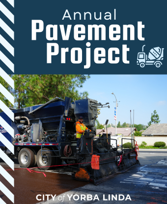 Maintaining our local roadway surfaces to high standards is a top priority in the City of Yorba Linda. The City’s annual Pavement Preservation Project is scheduled to begin in mid-August to enhance several key areas in the community. This year's project includes improving residential streets feeding into Brush Canyon Road, segments of Esperanza Road near Fairmont, sections of La Palma Avenue, and streets leading into Stonehaven and Via Del Agua. The road improvements will include a combination of slurry seal and asphalt overlay treatments that will take approximately four months. Residents will receive advance notice as there will be temporary parking and access restrictions during certain phases. Thank you for your cooperation as we continue to elevate Yorba Linda’s neighborhood infrastructure.