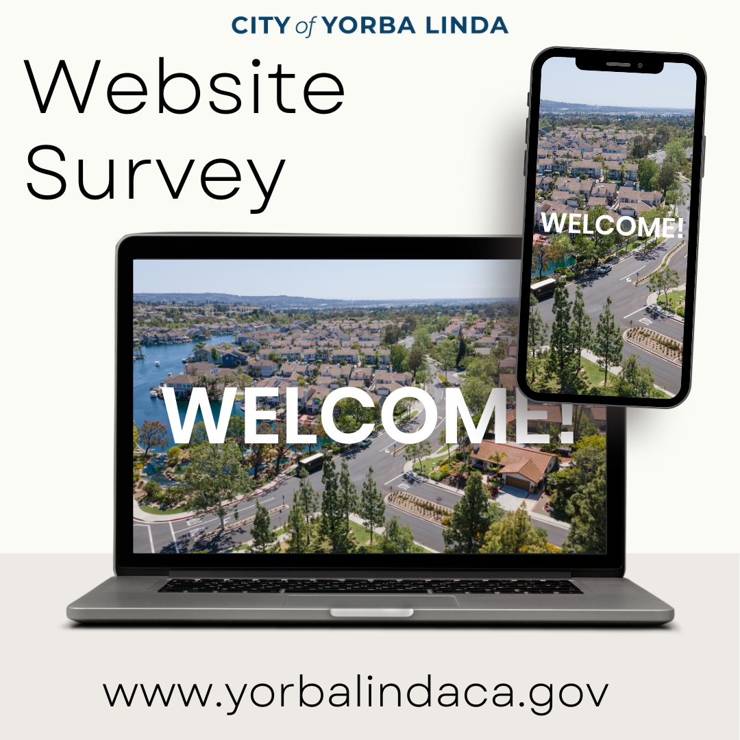 The City of Yorba Linda is in the process of updating the front webpage of the City's website, and we would like your input! As we continue to uphold our standards of exceptionalism, we want our City website to reflect that by prioritizing functionality and access to City-related information (while looking great!). Taking this short survey will help us to better understand your usage of the current website and how to make improvements. For more information on this project, please email us.