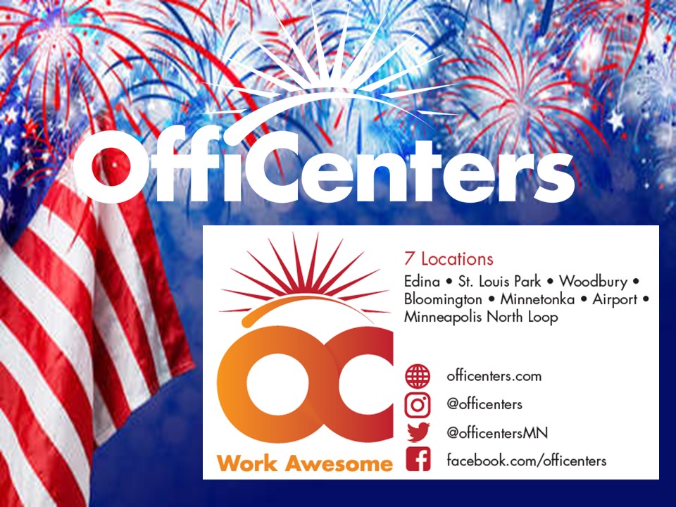 OffiCenters will be closed on Monday, July 4. Go out and enjoy the great weather and have some fun in the sun. Be safe heading into the long weekend. I'm planning to celebrate with food, family, friends and fireworks. Every year, I have a childhood memory of a lady in the neighborhood calling out to my dad, “Happy 4th of July, Billy!” It always makes Lea and I smile. So, in memory of him, Happy 4th of July!