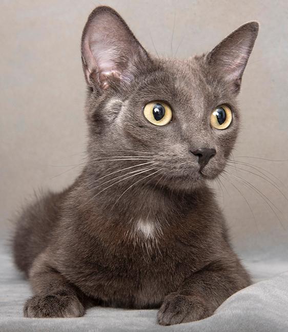 Momma Olympia would be fine as an only cat, or she can be adopted with one of her kittens: Simone, a brown tabby or Aleksandra, a blue kitten. The kittens would love a home with each other, their mom, or with another feline in the home. They need another cat in the home to be happy.