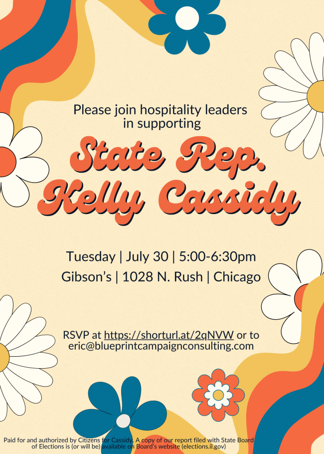 Join Hospitality Leaders in Supporting State Rep. Kelly Cassidy | |
