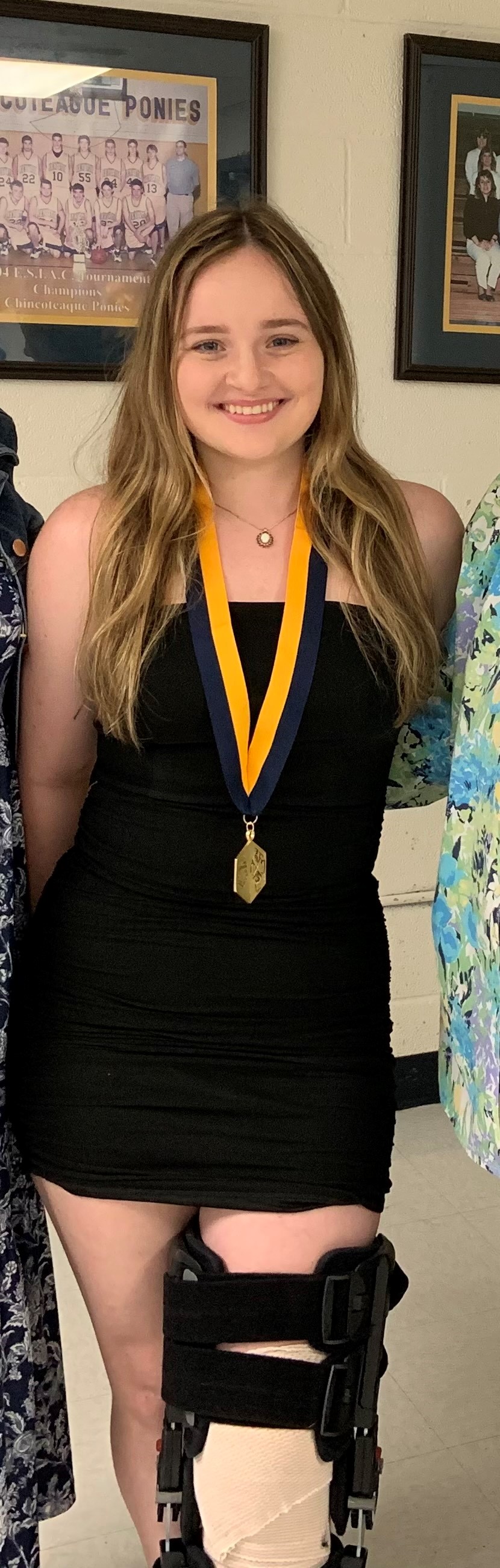 Nicki L. West's granddaughter, Jessica West, presented the 2024 Nicki L. West Memorial Scholarship to Miss Allison Garland at the Chincoteague High School Awards Banquet on May 15th. Allison plans to attend Old Dominion University in the fall to pursue a major in Chemistry with a pre-med track. Her ultimate goal is to attend medical school and specialize in Radiology. She says, "I am passionate about the intersection of science and medicine and I look forward to dedicating myself to a career where I can contribute to improving healthcare outcomes and making a difference in people's lives through the field of radiology."