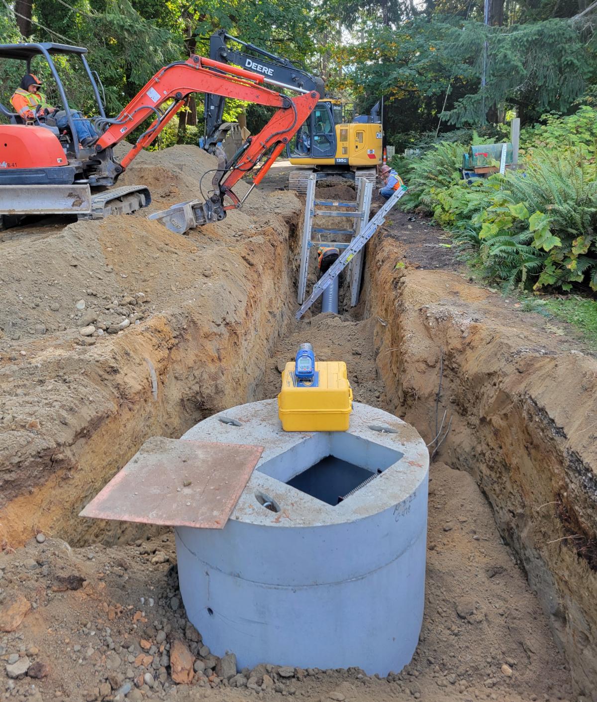 Construction continued this week on the Yeomalt neighborhood drainage improvements. The project includes the placement of new storm drainpipes, ditch enhancements and roadway paving along Yeomalt Point Drive, Madrona Drive NE, and Dingly Drive NE. A majority of the new storm drainage structures and piping have been installed, and grading is expected to begin next week in preparation for paving in mid-November. Weather permitting, the project should be completed by the end of the November.