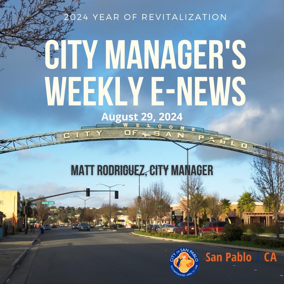 The City of San Pablo is pleased to share our weekly City Manager's report! The report provides a comprehensive overview of events, news, public meetings, special announcements and more!