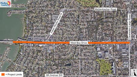 Pinellas County has proposed improvements along West Bay Dr. within the City of Belleair Bluffs and City of Largo. The project will begin at Belleair Bridge in Belleair Bluffs and continue east for approximately 1.9 miles to Clearwater-Largo Rd. in Largo.