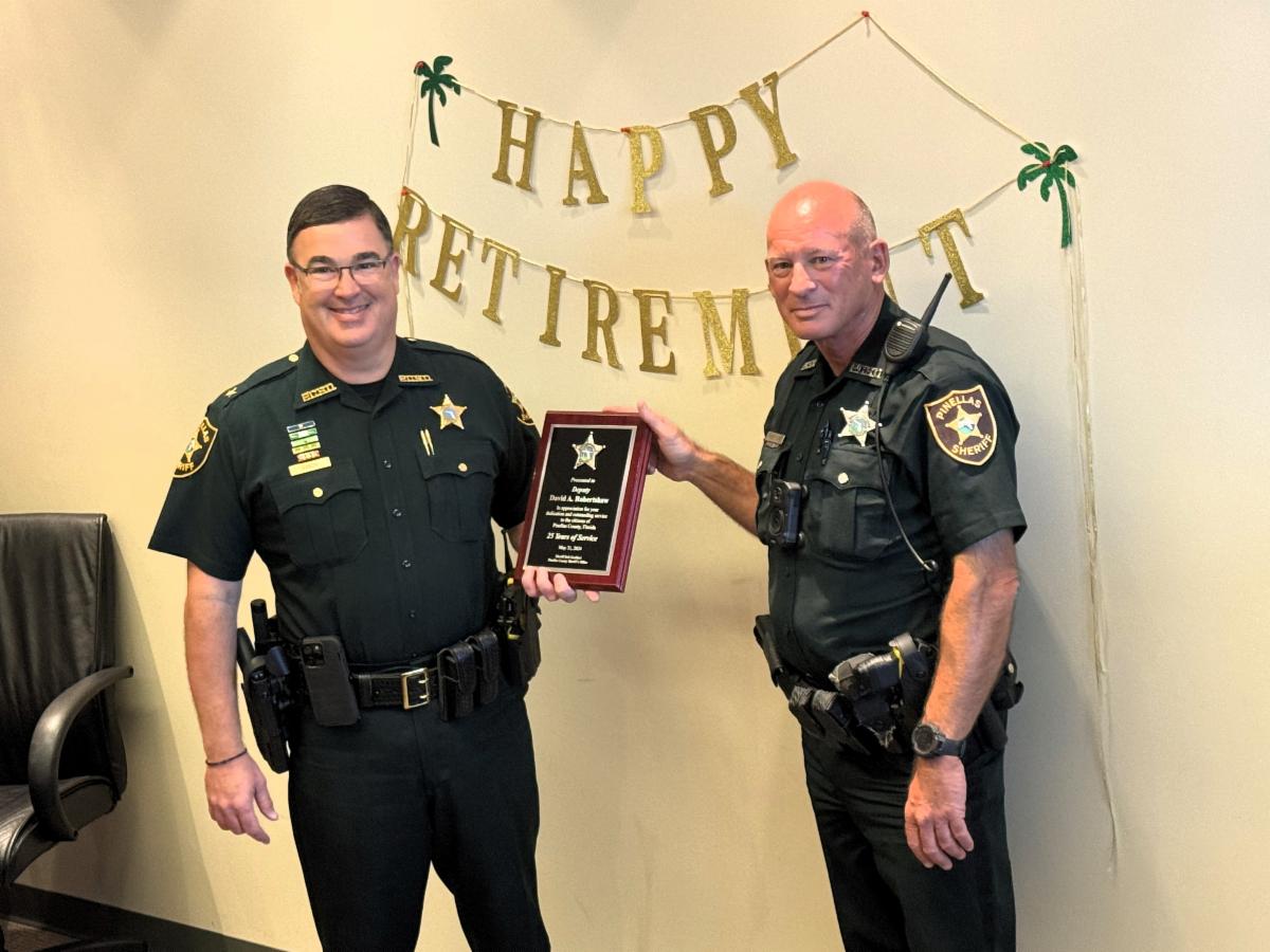 Deputy David Robertshaw (right) retired on Tuesday, May 28th from the Pinellas County Sheriff's Office after 25 years of dedicated service to the residents of Pinellas County.