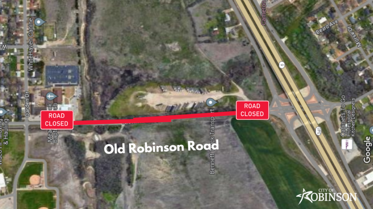 5 Star Civil is set to redo Old Robinson Road, from Loop 340 to Cottonwood Creek Bridge. The road will be closed for an estimated two weeks starting April 30th. | |