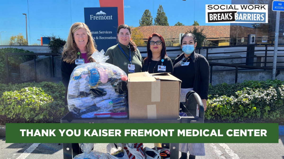 Kaiser Fremont Medical Social Work Department held a donation drive for items needed for the CleanStart Mobile Hygiene Unit in recognition of Social Work Month, which takes place each year during the month of March. Their theme this year is “Social Work Breaks Barriers that Prevent People and Communities from Thriving.” The drive brought in hundreds of items including underwear, socks, leggings, sweats, jackets, and toiletries. The items will be distributed through the CleanStart unit. Thank you to Kaiser Fremont Medical Center for your generosity!