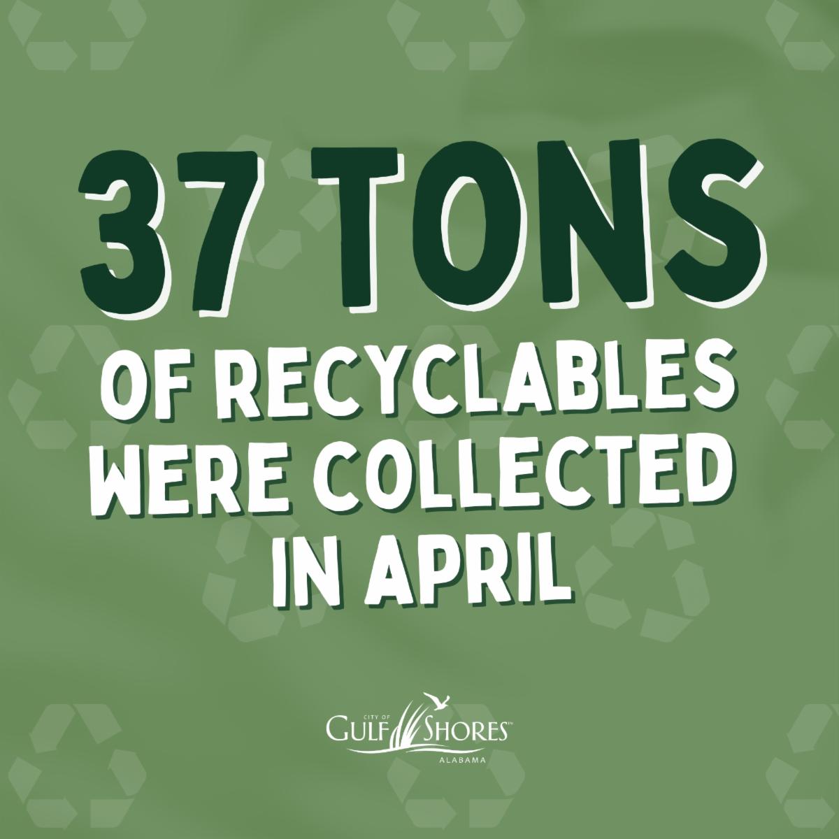 The City of Gulf Shores Public Works Department collected 37 TONS of recycling in April!