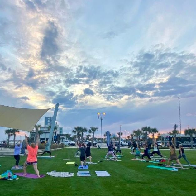 Sunset Yoga taking place June 2 on the Town Green at Gulf Place