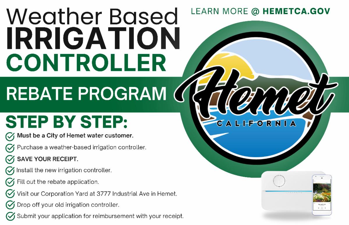 The City of Hemet is excited to announce our new landscape irrigation controller rebate program!