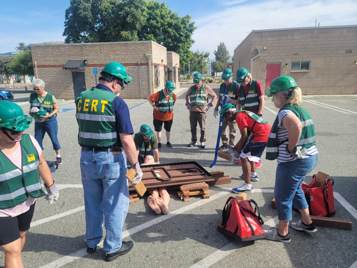 Hemet Fire Department's Emergency Services Coordinator Jay Cregeen, facilitates these teachings where he educates the community on emergency preparedness, fire suppression (different classes of fires, fire extinguisher use, utility shut off) as well as an intro to CERT which includes the command structure, terrorism awareness, light search and rescue and medical operations (shock, bleeding control, splinting, allergic reaction, heat and cold related injuries).