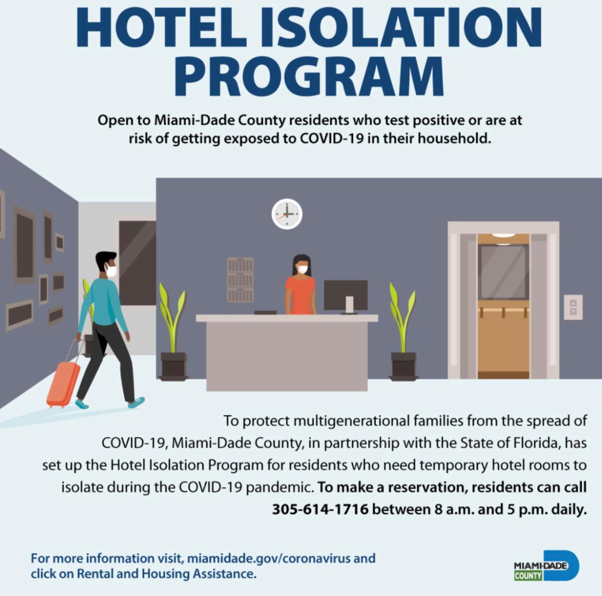 Miami-Dade County has expanded its hotel network for people who need temporary lodging to isolate during the COVID-19 pandemic because they either have tested positive or risk exposure in their households.
