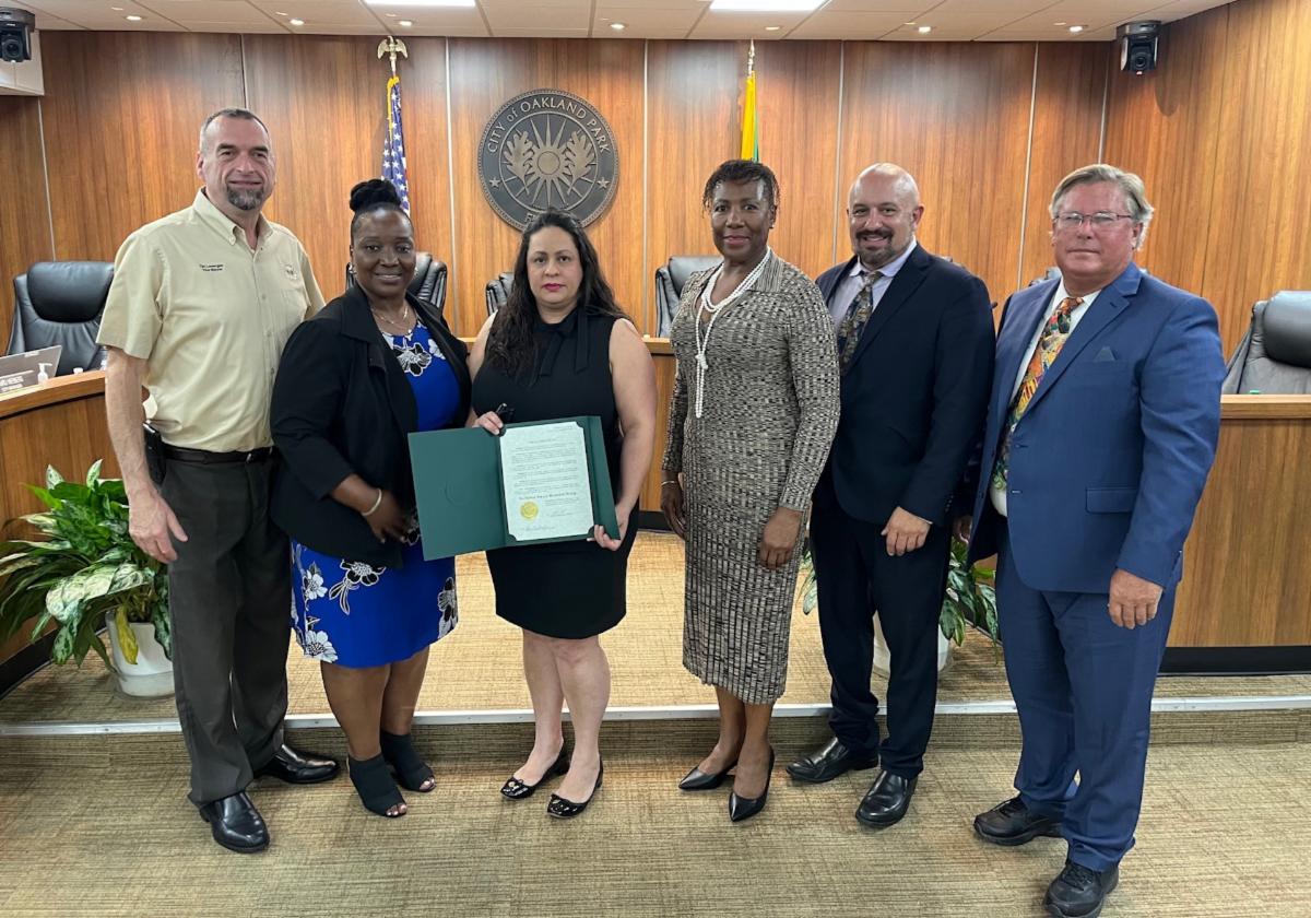 At the May 1st Meeting, the City Commission recognized April 28th to May 4th as National Small Business Week. The Commission presented Local entrepreneur, real estate agent, and President of the Oakland Park Business Association, Desiree Avila, with a proclamation to recognize the contributions the 33 million small businesses make to our nation's economy, fueling growth and spurring innovation in every sector of our economy;