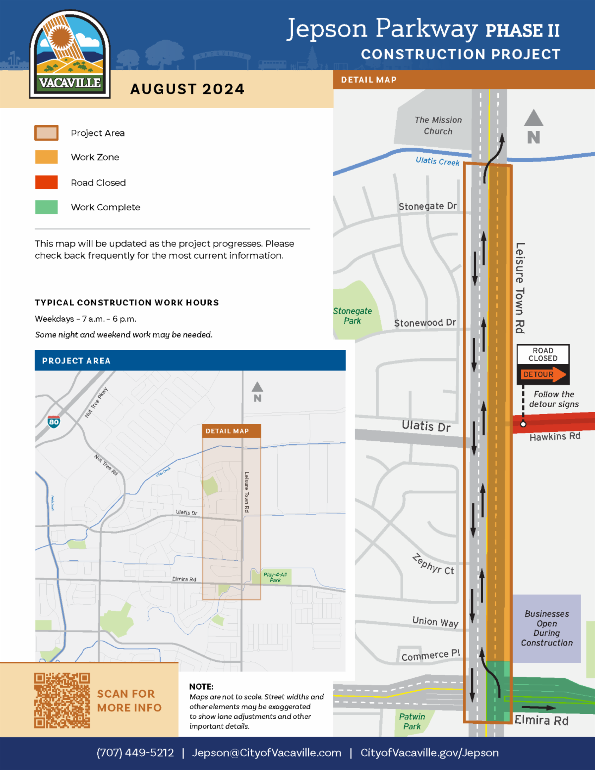 Project milestones, traffic impacts, and other important project information will be regularly updated on the City’s website CityofVacaville.gov/Jepson. Subscribe to e-mail updates.
