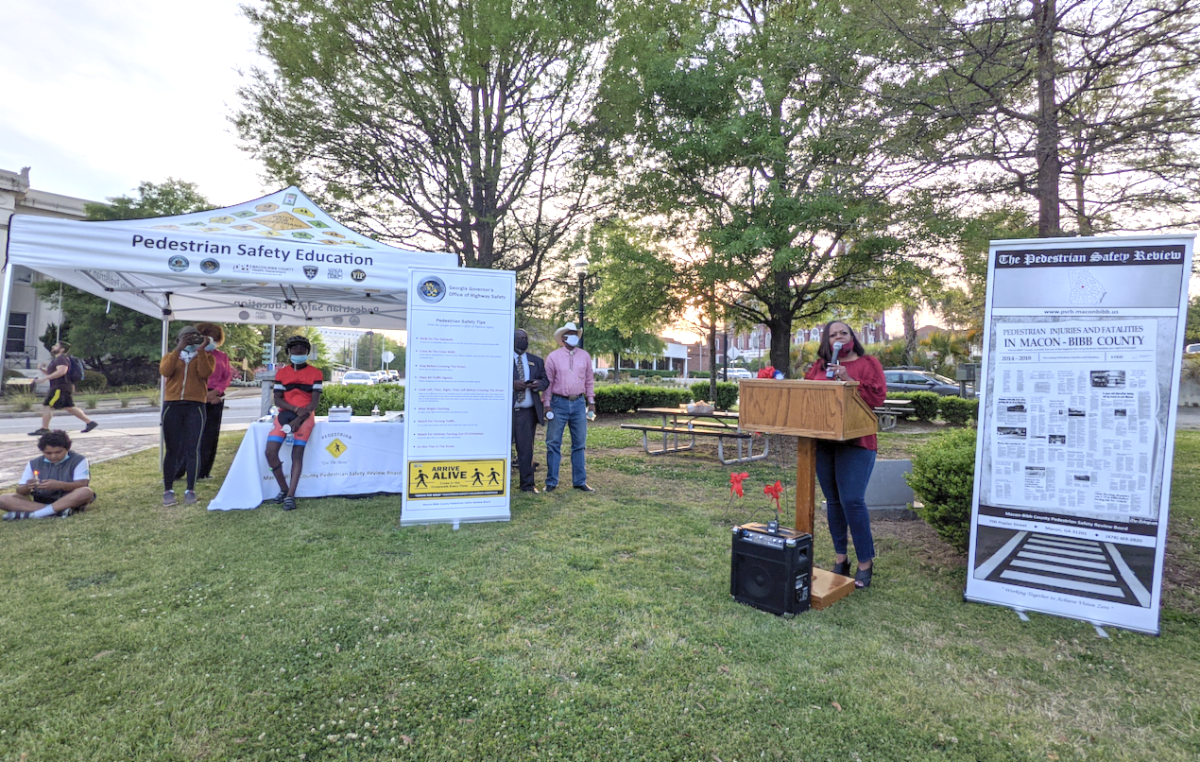 At a ceremony in Rosa Parks square on Wednesday, April 7, 2021, the community gathered to remember lives lost in road collisions.