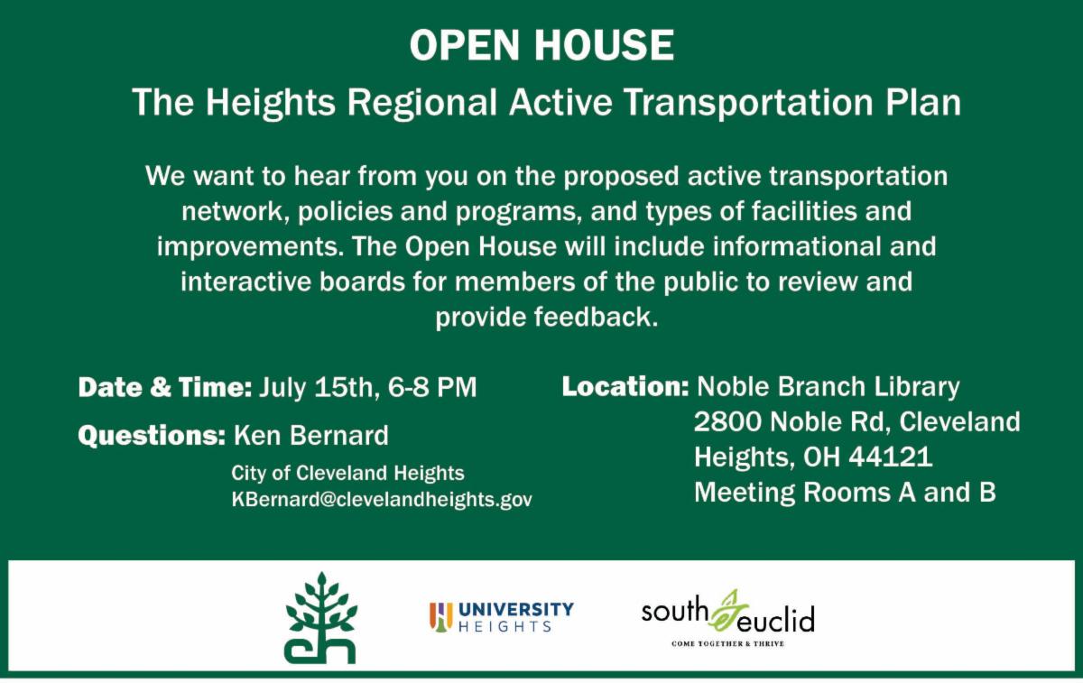 On July 16th, the City is hosting the second community workshop as we develop Cleveland Heights’s Climate Action and Resiliency Plan. At this workshop, we’ll explore how best to address local climate impacts and co-create solutions to help our city meet its carbon reduction goals, improve community resilience to climate change, and shape a more sustainable future. Join us and share your thoughts on solutions that will make Cleveland Heights a greener, more resilient community. | |