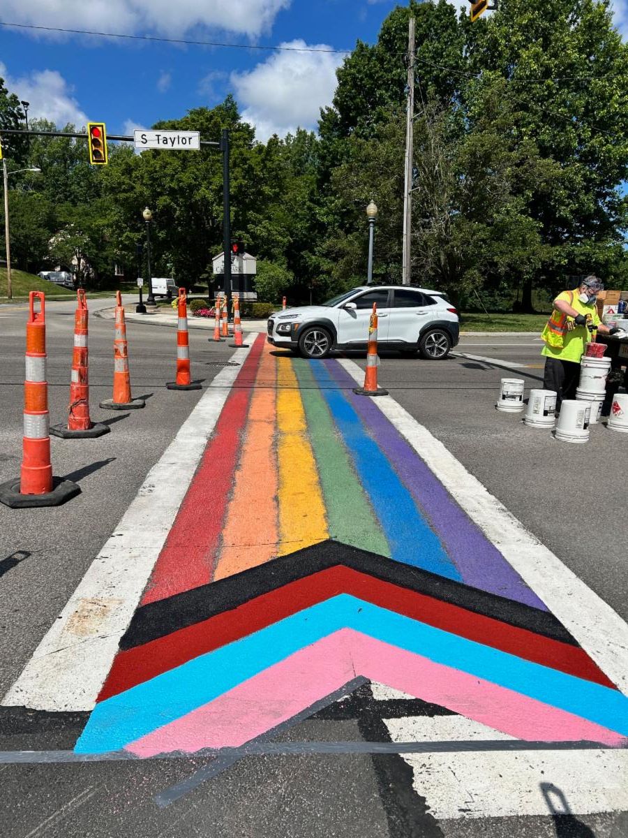 You may have noticed the road crews applying a fresh coat of paint to roadways in Cleveland Heights. All of the city's major thoroughfares are in the process of receiving freshly painted lines. Also, city crews are painting the Pride-themed crosswalk at the Taylor Road entrance to Cain Park (followed by the crosswalk at Lee Road). Please be cautious when driving near construction zones and always look out for the safety of our city crews. Thanks! | | |