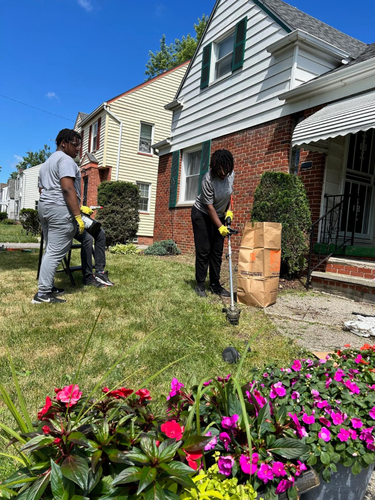 In one week, the students and Mr. Walker blitz through the weeds, sharpen up hedgerows, plant petunias, and generally spruce up the yards of 10 homes in Cleveland and University Heights. Walker drives his volunteer crew, all earning service hour credits toward graduation, in a City of Cleveland Heights van from place to place.