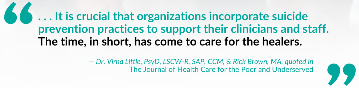 Clinicians are more likely than the general population to die by suicide, and organizations should take proactive steps to support their staff long before incidences occur. The best way to start is by honestly assessing your institution and how it incorporates suicide prevention, if at all, in its practices. Learn what questions to ask, how simple adjustments can create more supportive cultures of wellness for employees, and more in resources from our Suicide Safer Care (SSC) program.