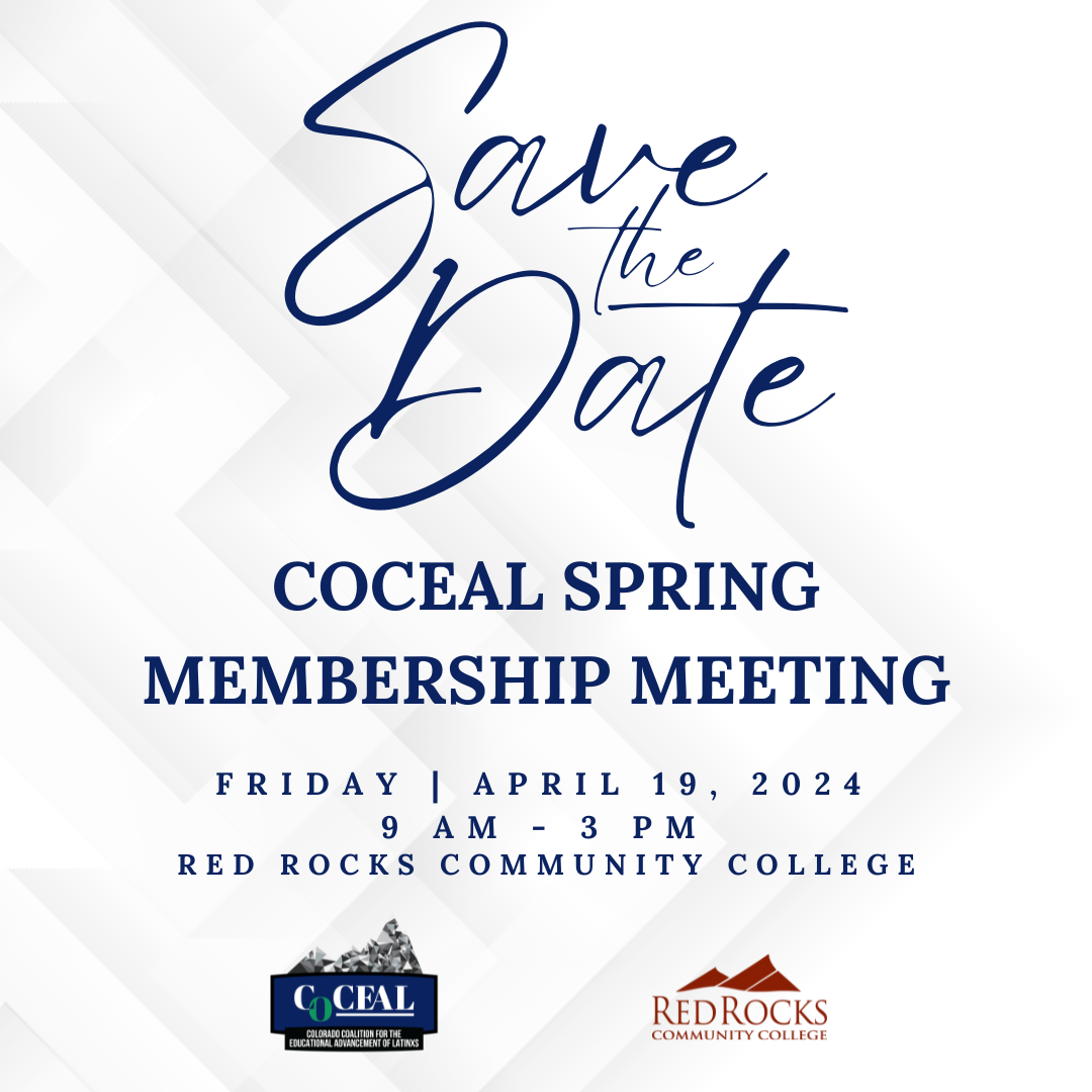 Join us for our Spring Membership Meeting on Friday, April 19th, 2024 from 9 AM - 3 PM at Red Rocks Community College. Stay tuned for more information about registration and the speaker announcement on our social media accounts @CoCEALColorado! | |