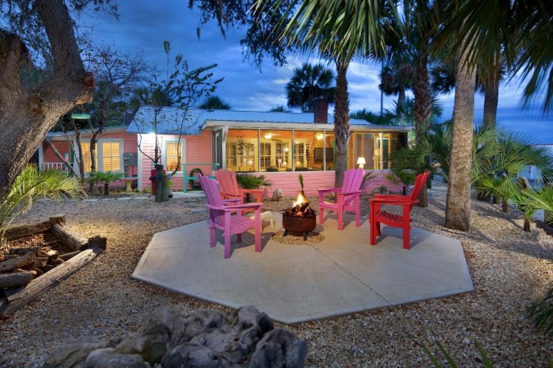 Our newly renovated Scallywag Shack. 6 Bedrooms and 3 1/2 baths. Granite counter tops, ceramic tile flooring, 4 bedrooms 2 bath downstairs with outside hot water shower, 1/2 bath in the laundry. Upstairs has 2 bedrooms and 1 bathroom, full kitchen and living area and a large covered and screened deck. Sleeps maximum of 15. Great for groups, meetings or events! Click here for more details.