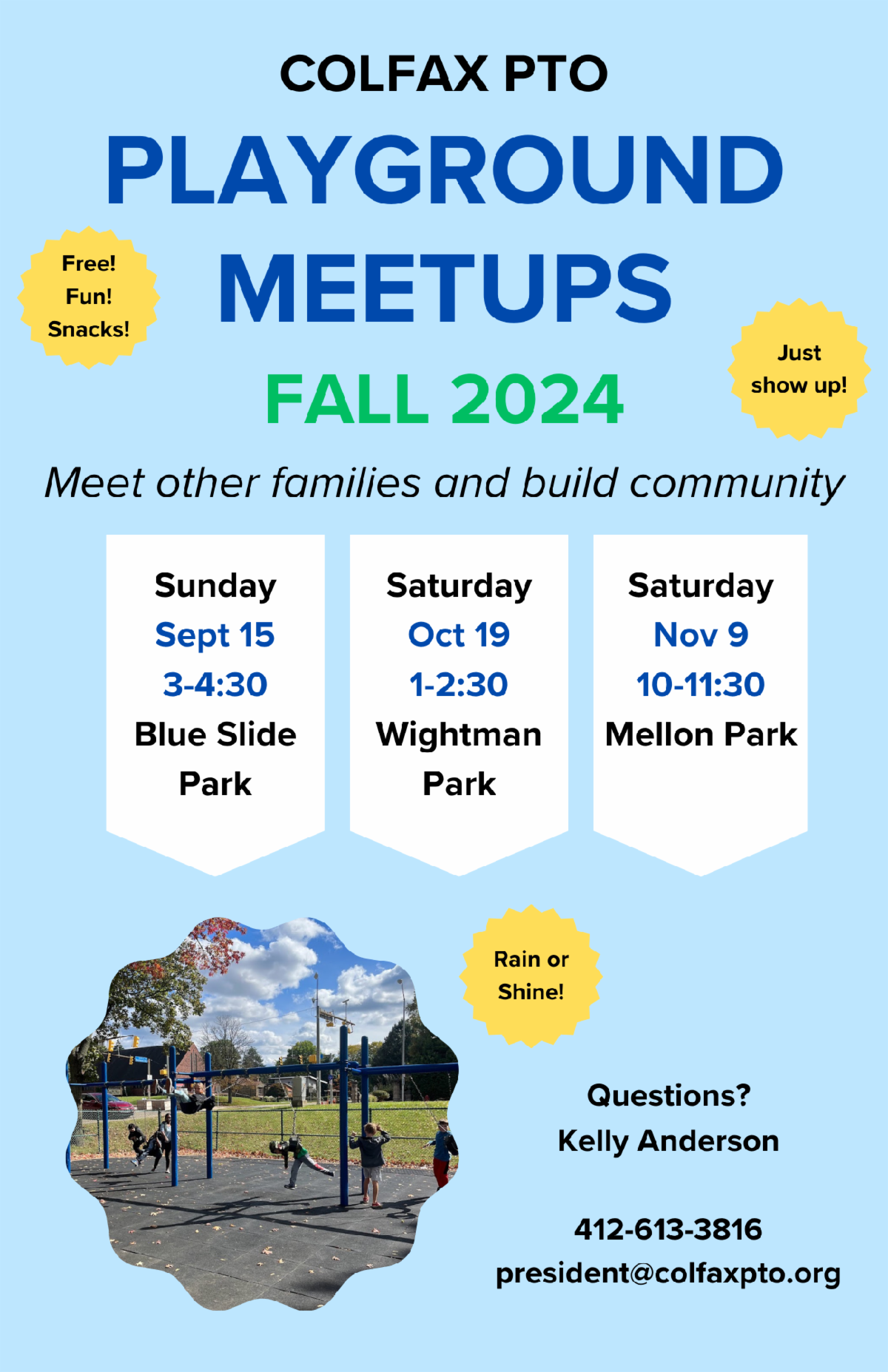 Fall Fest — mark your calendar for Wed 9/25 and contact events@colfaxpto.org if you'd like to volunteer!