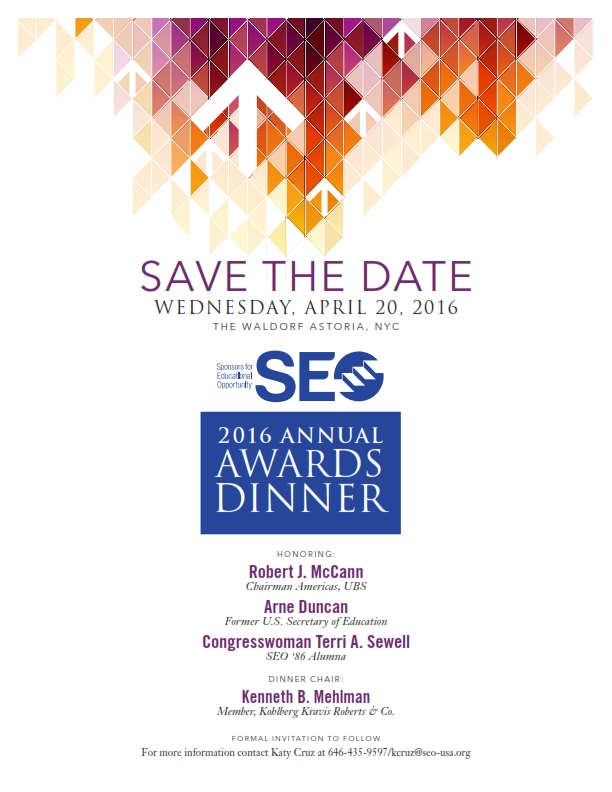 Each year, SEO honors those who have shown exemplary commitment to our goal of helping underprivileged and underrepresented youth get to and through college, and gain access to outstanding career opportunities. We are thrilled to announce our honorees for 2016: