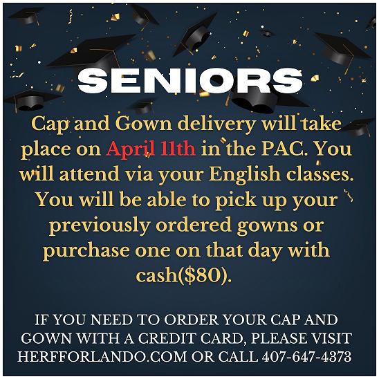 Cap and Gown Distribution Day (April 11th)