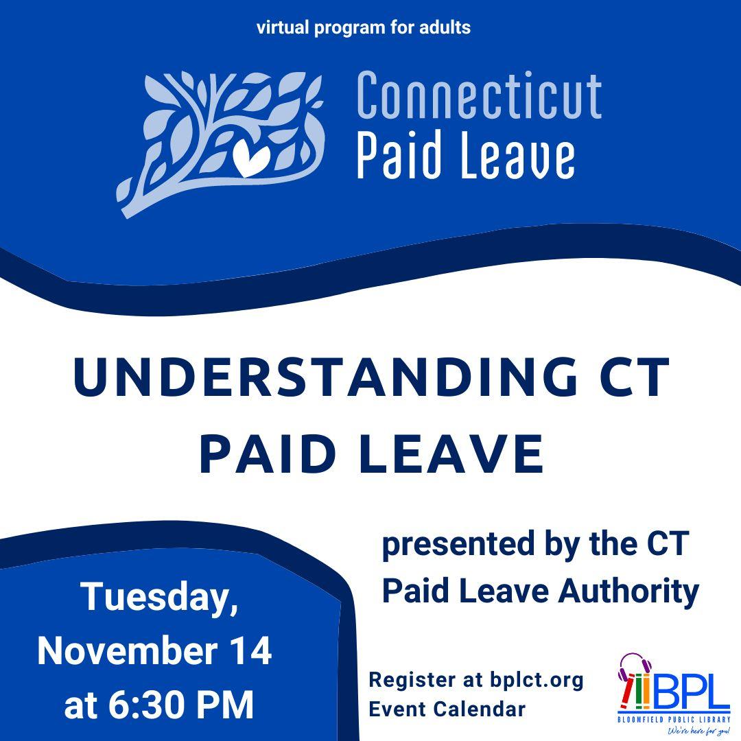 | Did you know that in Connecticut you can take time off from work to care for personal or family health needs without risking your paycheck? Join the Connecticut Paid Leave Authority for an informational session to learn more about the CT Paid Leave program, including eligibility, covered reasons for leave and how to apply for benefits. Staff will provide an overview of CT Paid Leave and will also be available to answer individual questions and assist with filing an online claim application. For Adults. | |