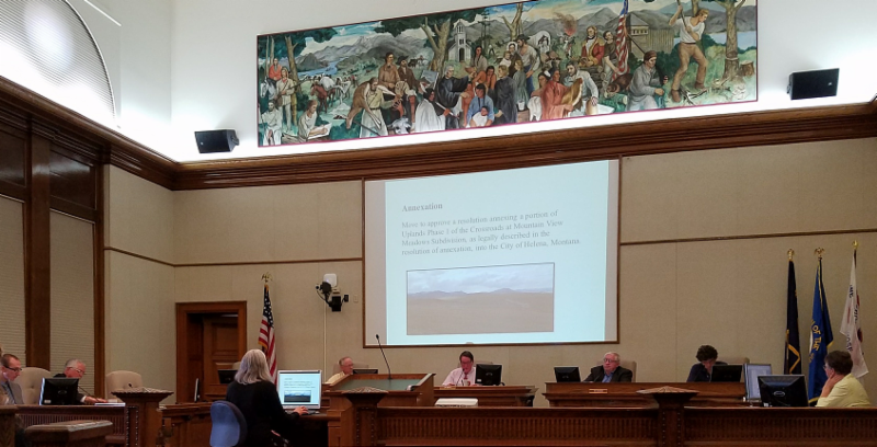 city. The process is complicated and fraught with obstacles, most of which are merely meant to ensure residents and tax payers that new development meets standards set by the city. In Helena, the staff at the Department of Community Development, under the guidance of Director Sharon Haugen, works diligently to help move the process along, coordinating with other departments and public entities to document every aspect of development for compliance with city regulations, conditions and standards before final plat approval. This includes coordinating with Public Works, Legal, Parks and Recreation, Community Development, Fire, Police, Finance (lighting district) and the Addressing Coordinator. The final plat is also reviewed by the Lewis and Clark County review committee and the Examining Land Surveyor as well as the Department of Environmental Control. If there is a utility easement on the property, such as the Yellowstone Pipe Line Co. easement, the staff contacts them as well. A representative of the staff then presents recommendations from the joint staff effort to the City Commissioners who must vote to approve or deny the final plat for development. On May 22, Developer Mark Runkle, and his wife, Director of Design Rebecca Ryland attended the Commissioners' meeting that would determine final plat approval of Phase I of The Uplands, a new neighborhood containing 22 residential building lots in their Mountain View Meadows subdivision. City Planner II, Lucy Morell-Gengler, who has worked in the Department of Community Development for about seventeen years, presented the staff recommendations, which, in this case, included annexation in addition to final plat which also required review for action by the Commission. "Most of the documentation for the City Commission is prepared by the City Attorney with Public Works providing much of the information," explained Morell-Gengler. "I prepare a memo and presentation that combines these comments and try to show the relationship between the various land use actions (typically zoning, annexation, and subdivision) and compliance with the city regulations, conditions and standards. The fun/challenging part of the presentation," she added, "is to try and make it understandable to someone who has no idea what a 'final plat' is." Runkle was quick to thank Morell-Gengler following the Commissioners' unanimous vote to approve final plat. "Her work is far from easy," said Runkle, "and we are very fortunate to have her represent the staff in such a professional way." Ryland, who marvels at Morell-Gengler's command of details and her ability to skillfully present the complex aspects of the development to the Commissioners, quickly agreed. "Lucy is amazing!"