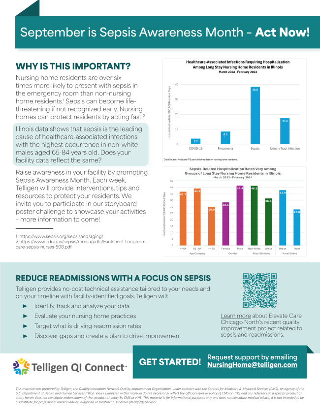 In 2011, September was designated as Sepsis Awareness Month, a time when healthcare professionals and organizations come together to raise awareness of this life-threatening emergency. Improve outcomes for the residents in your skilled care setting by participating and joining together in this effort to promote early detection and management. You can make a difference and save lives!