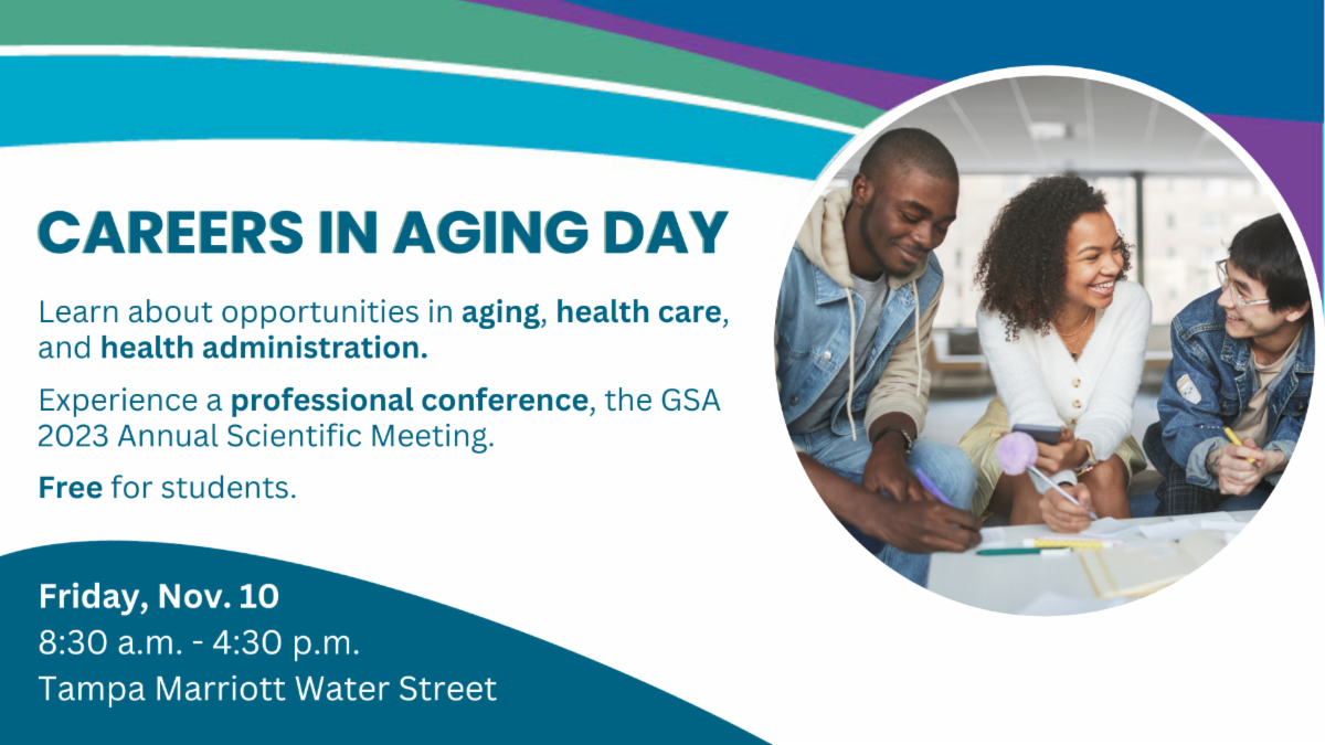 Please encourage students interested in a career in aging, health care, or healthcare administration to attend this free event. Students will have an opportunity to learn about a career in aging and experience a professional conference.