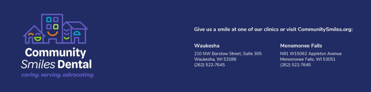 Community Smiles Dental is a 501(c)(3) non-profit organization with a mission to improve the lives of the underserved through oral healthcare services, preventive education, and advocating for systemic healthcare change - Because everyone deserves a healthy smile. The agency provides comprehensive dental care to low-income children, pregnant women, special needs patients, and adults in the four county Greater Milwaukee area. Community Smiles Dental owns and operates two full-time clinics located in Waukesha and Menomonee Falls. Qualified patients receive ongoing care from some of the highest-quality dental professionals in the area. Learn more at www.communitysmiles.org.