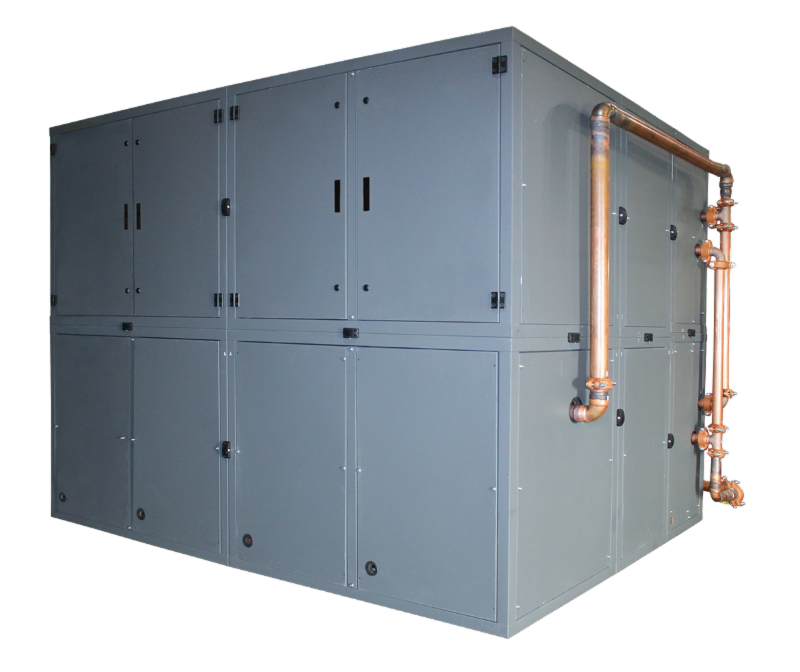 , is a Dedicated Outside Air System, Air Source Heat Pump, VAV (thru BMS) capable of 100 to 500CFM with Dual Energy Recovery Devices. Alpha Aire is designed for indoor installation, requiring no exterior mounting space, which is critical in multi-floor, urban applications. Indoor unit mounting preserves the architectural integrity of the building by keeping the roof and perimeter free of obstructions. Whether used for retrofits or in new construction matched up with a VRF system, Alpha Aire delivers one of the highest efficiencies of 11.1 ISMRE and 8.0 ISCOP.